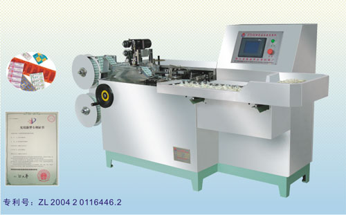 本机是根据国内外现有的安全套包装机的基础上经引进、消化、吸收、创新和自主开发相结合而研制成,是目前国内最先进、最可靠的安全套包装机;其主要特点是低噪音、调节方便,改进后的各机械结构更为合理并充分保证了使用寿命;可一次性自动完成送料、送膜、安全套拉长、热封、压痕、单包分切及任意包计数分切、自动滴油,还可根据客户需要增加对图文版面(对花)、喷码等功能,同时还预留了自动加套机对接口以满足部分客户需要。
