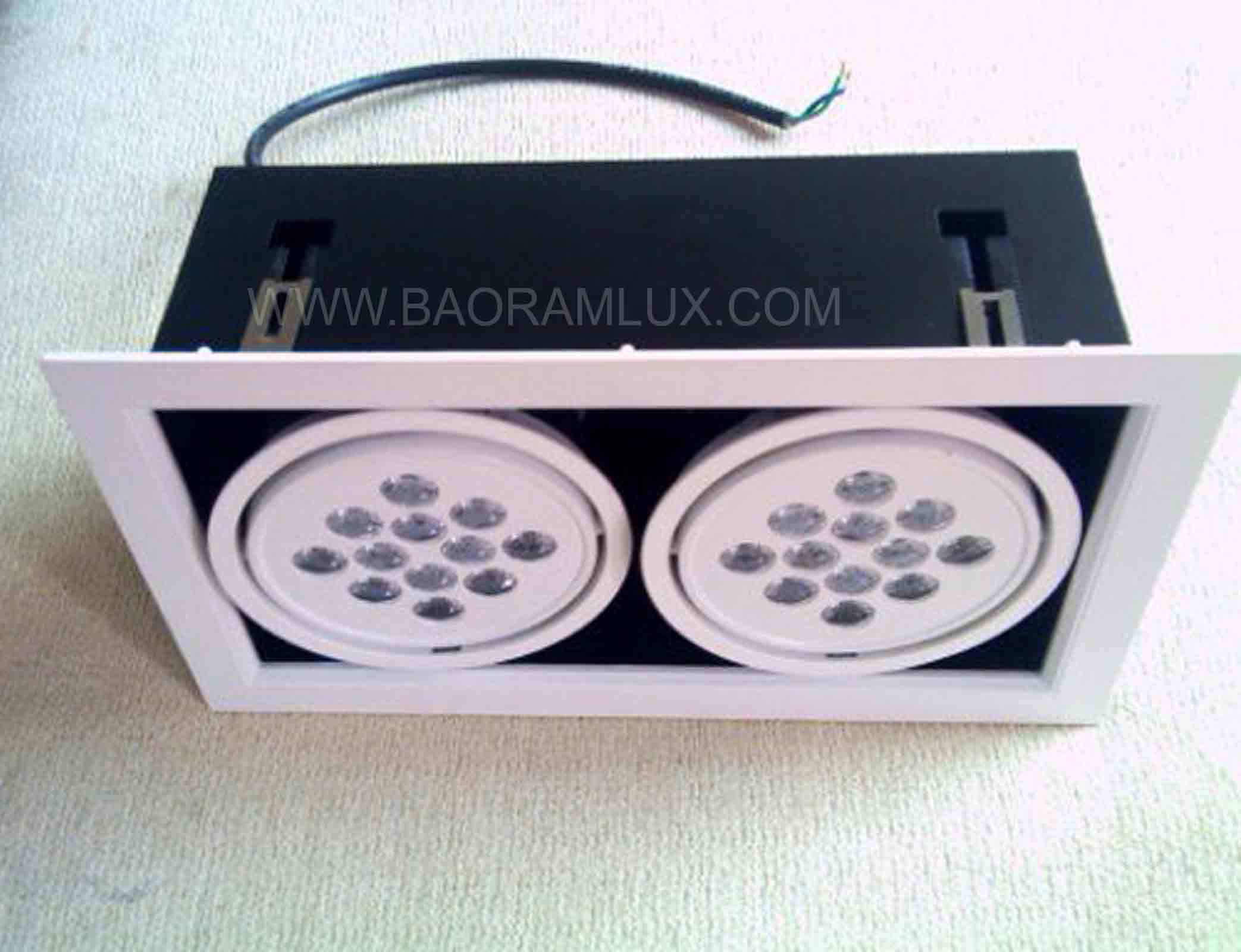 LED双头斗胆灯12*1W*2,L358xW190xH135mm 开孔:L317xW156mm,LED数量:24*1W,包装规格:340*200*170mm;灯具流明:2400LM,色温:白光6500K,输入电压:AC 85-260v 50-60Hz