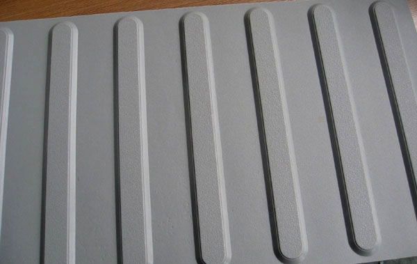 新铺设的盲道 ,直接用胶粘在人行道上的,因此不需要破坏原有路面。绍兴市海斐建材有限公司提供的盲道砖,盲道钉以及盲道条是按照国际残联的有关标准制造的,设计优良,具有灵敏的触觉感,强腐蚀,耐损耗性和长寿命等特征。这种高强塑料盲道砖的表面既美丽又光滑,适用于室内或室外装修。它凹凸的模型不仅可以使盲道更加安全,同时还美化环境作用。在施工期间,安装的方法也非常简单和方便,这种盲人道砖已通过国家安检被大量使用在重要的道路上,耐用性强,并赢得了良好的声誉和评价。 盲人道砖为盲人带来福音,同时也美化了城市道路。规格:300mmX300mm 250mm×250mm 平整部份厚度约3MM,凸起部份厚度约6MM一块重量约500克 施工:在地面清洁干净并打磨之后,可用万能胶、环氧树脂进行粘贴 |