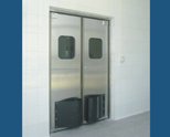 此款门适用了快餐公司,手拉车较多的公司。以免每次进出先用手推开。这款门下方采用了防撞板,直接可以用手中的推拉车撞开即可,当人离开时会自由返弹回到原状。门板轻便、重量仅为12.2kg/m2,容易开启,操作平稳,允许人员安全通过,并不会对设备造成任何的损坏.整体门板厚度是48mm,外皮厚度在3.2mm,交叉连接的聚乙烯外在400F同样可以保留它的特性.窗3.2mm厚聚碳酸酯窗户,镶有黑色铝合金框架,从门板表面凹进去至少3.2mm厚,用于保护窗户的表面由于负荷而引起的磨损.内部的加固门的主体和背面边缘的内部用钢管加强,保证了门板的水平面和门板的坚固性.密封持久耐用密封是适用于工厂应用的,没有使用那些金属条或是紧固件,制造这种密封替换是容易的.绝缘的核心内部的CFC聚氨脂发泡(可以永久的与外表皮相连)不会因冲撞而脱离,并有良好的隔音性和极好的绝缘性.R值:12.54