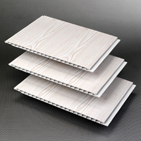 PVC壁板 1) 标准厚度: 5mm-10mm 2) 标准宽度:10cm,18cm,20cm,25cm, 3) 用于天花吊顶及壁板