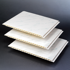 PVC扣板 1) 标准厚度: 5mm-10mm 2) 标准宽度:10cm,18cm,20cm,25cm, 3) 用于天花吊顶及壁板