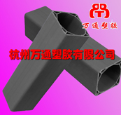塑合金电力管(杭州万通塑胶有限公司生产)是将各种原料(包括PVC、ABS、MBS、Hst、CaCO3、TiO2等)按一定比例配制,经高速热混合机混合后,送冷混合机冷却至一定温度,放入挤塑机塑化挤出,挤出的型胚经真空干湿,组合定型模冷却定型进入涡流冷却循环水箱,得到进一步的并冷却定型处理,经定长切割机切割,制得的产品。可替代钢管用于管线穿越马路的埋地敷设工程及港口码头,桥梁,高速公司,机场,隧道等工程中,具有显著的社会效益.它除了具有一般管道的良好综合性能,而且还具有高抗冲性,高韧性,抗压强度高,使用寿命长等突出性能,并且管材重量轻,内壁光滑,磨擦系数小,易于电缆的穿放.