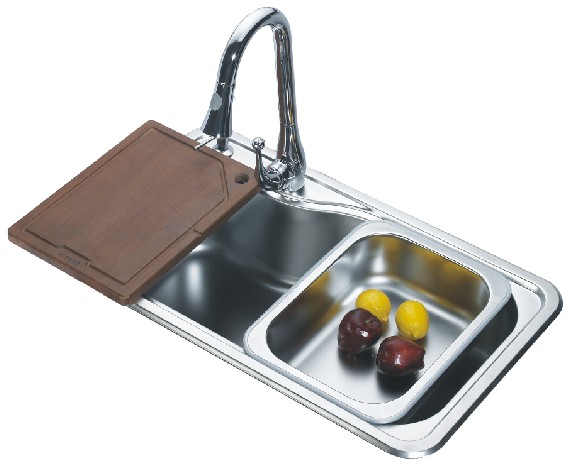 配置:7309全铜抽拉龙头、02皂液器、节水浸泡槽、619刚果沙比利大菜板、双层双滤大提笼、304板材 1.0mm 。工艺:整体拉伸,表面:珍珠面,母槽尺寸:830*488*220mm 子槽尺寸:416*316*120mm