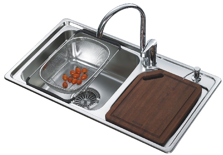 配置:189C全铜龙头、01皂液器、712刚果沙比利菜板、抽拉沥水篮A、双层双滤大小提笼、304板材 1.0mm 表面:细拉丝,尺寸:842*478*230mm,开孔:812*450mm.