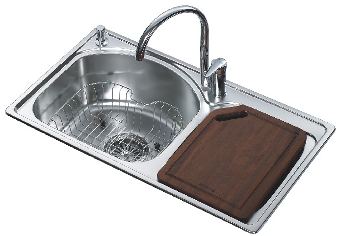 配置:189C全铜龙头、01皂液器、712刚果沙比利菜板、不锈钢沥水篮、双层双滤大小提笼、304板材 1.0mm 表面:细拉丝,尺寸:836*460*230mm