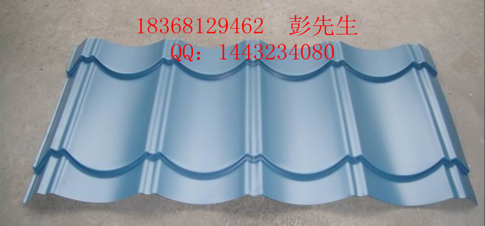 该瓦形状,仿造古琉璃瓦,材料选0.3-0.6厚彩色钢板,色泽丰富,耐腐蚀性强,集轻质,高强,装饰为一体,以柔和的曲线,明显的阶梯,极富立体感地再现了古瓦效果,每平方米重量仅为5-9公斤,是传统烧结瓦的几十分之一。牢固的链接方式完全能承受屋面荷载;特有的空气间层提高了保温隔热性能;瓦自身故有的防水槽具有良好的防水特点,非常适合轻钢结构,混凝土结构,木结构等坡顶建筑或旧城改造中平改坡工程。