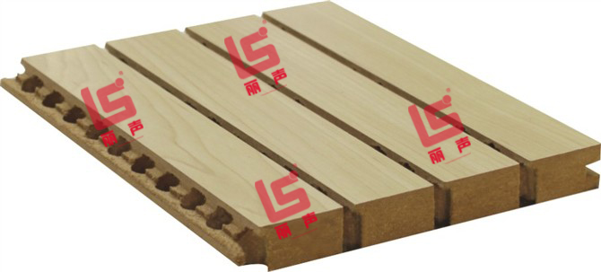 槽木吸音板是一种在密度板的正面开槽、背面穿孔的狭缝共振吸声材料,常用于墙面或天花装饰。背部贴防火吸音毡,通过改变空间结构,改变声音穿透途径,达到吸音降噪目的。 基 材: 采用一级高密度罗宾板,厚度为15mm或18mm,也可根据客户要求使用其它MDF板材。 • 饰 面:三聚氰胺、木皮饰面,颜色可选,也可按客户要求定做。 • 吸声薄毡:颜色为黑色,粘贴在吸声板背面,具防火吸声作用。 • 型号:13/3型、14/2型、28/4型、59/5型,也可按客户要求定做。 • 规格:L2440mm*W128mm*H15mm,L2440mm*W128mm*H18mm,也可按客户要求定做。 • 允许公差:宽度为0.1mm,长度为2mm。 • 安装: 板条长边设计为90度角的企口和凹口来拼接安装。 • 吸声原理:木质吸音板结构的吸声机理是薄板共振吸声。 在共振频率上,由于薄板剧烈振动而大量吸收声能。 • 产品特点 • 科技产业:根据声学原理,合理配合,具有出色的降噪吸音性能,对中、低频吸音效果尤佳。 • 艺术产品:既有天然木质纹理,古朴自然;也有体现现代节奏的明快亮丽的风格,产品的装饰性极佳,可根据需要饰以天然木纹、图案等多种装饰效果,提供良好的视觉享受。 • 环保产品:所有材料符合国家环保标准,产品还具有天然木质的芳香。具有木质最高的防火等级B1。己通过国家权威部门检测。 • 安装简易:标准化模块设计,采用插槽、龙骨结构,安装简便、快捷。 • 工业生产:改变传统建筑材料粗放型生产,采用全自动计算机控制设备,大规模标准化生产,即提高生产能力,也能保证产品质量。 • 安装方法 1、安装前的存放要求 存放“英哲”木质吸音板的仓库要求密封和防潮,在安装“英哲”木质吸音板前,必须先将包装箱打开至少达48小时以上,以便产品达到与安装场所相一致环境特性。 2、安装场所要求 安装场所必须干燥并且至少安装前24小时要达到规定的温湿标准,安装场所要求的最低温度为15度,安装后的最大温度变化值要控制在40—60%范围内。 3、墙面用吸音板安装方法 (1)、先将轻钢龙骨安装到墙面。 (2)、贴墙轻钢龙骨的立面尺寸18X26X3000mm长,分隔间距为60cm。 (3)、将尺寸为45X38X5mm的扣片安装在龙骨和吸音板之间。 (4)、覆盖吸音板背面的玻璃棉:厚度30—50mm、密度32kg每立方米、宽度与长度为600X1200mm。 4、注意事项(墙面) (1)、龙骨架格栅之间推荐选用的间距为60CM。 (2)、多块“英哲”木质吸音板在板与板组合安装时,板头与板头之间至少要留出3MM的空隙。 (3)、如果吸音板从地面开始按横式安装,则长面的凹口要朝下安装并用扣片锁紧,一块接一块再将其他吸音板安装上去。