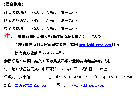 3、通过中国天花吊顶网、集成吊顶网、《中国吊顶》杂志、腾讯家居、新浪家居、嘉兴电视台等各大媒体、电台、专业杂志、行业网站等主流媒体与本展会签订战略合作协议。