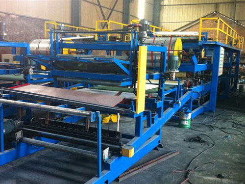 彩钢复合板机 彩钢复合板机的生产及控制系统 彩钢复合板机用于: 1、工业厂房、仓库的生产安装。 2、冷库、箱体包装的生产原材料。 3、轻钢住宅、原有建筑夹层房的生产原材料。 4、活动板的生产原材料。 5、各种净化房.空调室等的生产原材料。 彩钢复合板机是指能生产彩钢复合板的机器设备,也就是我们俗称的夹芯板复合板机,它根据里面的填充物不同分为泡沫夹芯板设备和岩棉夹芯板设备两种,它广泛运用于活动板房的生产车间。 彩钢复合板机能快速生产出优质的彩钢复合板,节约时间和人力,一条生产线需要5人就可以完成操作,为需要赶制工期提供方便。设备的使用寿命长,一般胶水泵要定期清理,变频器注意防尘,整体性能非常稳定。 在复合板机的控制系统中,PLC控制电机的应用越来越广泛,特别是它在位置、速度、转距方面的控制越来越方便。我们加工钢料靠的是电机送料的长度来定位的因此选用PLC控制伺服电机的位置控制方式。 一般位置控制都是选用电动机作为驱动部件。电动机轴的转动可以通过丝杠转化为工作台的直线运动。因此电动机的定位控制实际上就是工作台的位置控制。典型的位置控制部件以PLC、交流伺服电动机、轴脉冲编码器组成,其中PLC要具有高速脉冲计数功能。位置控制系统的工作原理:控制对象(工作台)的指令位置由PLC给出。增量型轴脉冲编码器安装在交流电动机轴上或丝杠上,编码器的输出脉冲接入PLC的高速可逆计数器模块.电动机的旋转通过传动机构转化为控制对象的运动,高速计数器的值记录了电动机轴或丝杠的旋转位置,间接或直接地得到了控制对象的实际位置,因此由复合板机PLC控制电机带动编码器再接回PLC这个闭环系统能实现基本的位置控制。 彩钢夹芯复合板生产线既具有钢铁资料机械强度高,易成型的功能,又兼有涂层资料良好的装饰性和耐腐蚀性。 多功能彩钢保温复合板生产线是把彩涂钢卷压成型后用强力粘合剂复合在较厚的内芯材料的两面,形成了一种强度高、重量轻、隔热保温、坚固耐用外形美观的新型建筑材料。 隔热复合板生产流水线广泛应用于轻钢结构建筑的顶层及墙体,产品具有色泽鲜艳,无需二次装饰的特点,本公司已开发生产系列专用设备。 压瓦机http://www.xhxywjxc.com/ 泡沫岩棉两用复合板生产线http://www.xhxywjxc.com/fuheji/fuheji.html 840/850双层彩钢瓦设备http://www.xhxywjxc.com/scywj/scywj.html C型钢成型机http://www.xhxywjxc.com/czxgj/czxgj.html 750彩钢压瓦机http://www.xhxywjxc.com/dcywj/dcywj.html