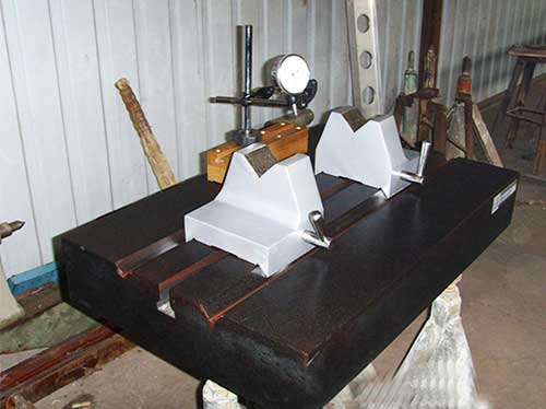 大理石量具 大理石量具制成与大理石T型槽平板性能 大理石量具是用天然石质材料制成的精密基准测量工具,对仪器仪表、精密工具、机械制件的检验,都是理想的基准面。特别是用于高精度的测量方面,由于它得天独厚的特性,而使花岗石平板相形见拙。花岗石取材于地下优质的岩石层,经过亿万年自然时效,形态极为稳定,不用担心常规的温差而发生变形。经严格物理试验选择的花岗石料结晶细密、质地坚硬,抗压强度达到2290-3750㎏/平方厘米,莫氏硬度达到6-7级。耐磨损、耐酸、耐碱,具有很高的耐腐蚀性,永远不会生锈。由于花岗石系非金属材料,绝无磁性反应,亦无塑性变形。其硬度比铸铁高2-3倍(相当于HRC>51),因此精度保持性好。在使用中岩石工具即使遭重物磕碰,至多掉几粒石渣而已,而不会像金属工具那样,因变形而破坏精度。岩石量具、检具、精密测量基准零件具有高而稳定的精度。 大理石平台采用优质"济南青"石料经机械加工和手工精磨制成,具有精度高、寿命长、耐酸碱、不易变形等优点,适用于机械加工、零部件制造行业的精密检验、精密测量和精密划线工作。 大理石T型槽平板的特点主要是精度稳定,维护方便。这是因为:大理石平板的组织结构稠密,表面光滑耐磨,粗糙度数值小;大理石量具经长期天然时效,内应力完全消失,材质稳定,不会变形;耐酸,耐碱,耐腐蚀,抗磁;不会受潮生锈,大理石平板使用维护方便;线胀系数小,受温度影响小;工作面受碰撞或划伤后,只会产生凹坑,不产生凸纹,毛刺,对测量精度无影响。 大理石T型槽平板物理性能: 平面度公差依:GB4987-85标准: 00级=2×(1+d/1000)um 0级=4×(1+d/1000)um 1级=8×(1+d/1000)um (d为对角线mm)(测量温度一般在20±2℃ 比重:2970-3070kg/㎡ 抗压强度:245-254N/m 线膨胀系数:4.61×10-6/℃ 吸水率:﹤0.13% 肖氏硬度:Hs70以上。 沧州鑫泓铸造有限公司是集设计、生产制造、安装、调试及售后服务为一体,专业从事铸铁量具,大理石平板,机床垫铁,拼装平台,铆焊平板平台,落地镗工作台,花岗石机械构件,花岗石方箱,花岗石方尺,工程机械配重铁,配重铁,螺栓,钢板斜铁等产品,适用于各种检验工作,精度测量用的基准平面,用于机床机械检验测量基准,检查零件的尺寸精度或行为偏差,并作精密划线,在机械制造中也是不可缺少的基本工具。