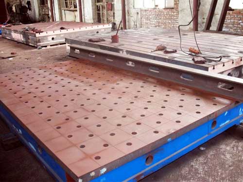 铸铁平板 铸铁平板与三坐标平板平台的知识 一、铸铁平板 1、按材质不同,平板有铸钢平板、铸铁平板和大理石平板三类。 1)铸钢平台韧性好,一般用于冷作放样或样板修整。 2)铸铁平板精度稳定性好,除具有铸钢平板用途外,经压砂后可作研磨工具。 3)大理石量具工作表面在使用中保养维护方便,材质稳定,受温度影响较小,机械精度高(防锈、防磁、绝缘)等,但湿度高时易变形。适用于直角检测、平面检测、高度测量、机床机械检验测量并作为精密划线及一般划线等各种检验工作的精度测量用基准平面。大理石平板是岩石平板中最常见的一种。 2、铸铁量具精度 大理石平板共有000、00、0、1四个精度等级;铸铁平板共有000、00、0、1、2、3六个精度等级,在机械加工制造中多用铸铁平板。 一般的机械加工常用平板的级别为0、1、2、3四个精度等级,0、1、2级平板一般作检验用,3级平板多作划线使用。 检验用工作铸铁平台(平板)适合于各种检验工作和精密测量,基础平面常与铸铁平尺、铸铁方箱、v形架铁)、铸铁弯板、直角尺、圆柱角尺等工具配合使用。 三坐标平板平台使用与维护: 1.用时小心、谨防碰撞。 2.用完后擦净,涂无水酸性的防锈油,笼盖防潮纸,置于清洁干燥处存放。 3.三坐标平台使用前用无侵蚀性汽油,将工作面的防锈油洗净,并用脱脂棉纱擦拭干净,方可使用。 4.三坐标平台温度变化会使丈量产生误差,应在20±50C范围内使用。 5.三坐标平台使用时用水平仪调整到水平,使支点平均分布各支点上。 三坐标平板平台规格:100*100—3000*6000,大于此规格的装配平台可以拼装使用或按图纸订做。 三坐标平板平台适用于各种三坐标检验测量工作,表面附有三座标线,方便三座标测量,可以精确测量零件的精确度和形位偏差,三坐标平板在机械制造中是不可缺少的基本工具。三坐标测量是指在一个六面体的空间范围内,能够测量,几何形状、长度及圆周分度等。三坐标测量仪可定义为"一种具有可作三个方向移动的探测器,可在三个相互垂直的导轨上移动,此探测器以接触或非接触等方式传送讯号,三个轴的位移测量系统(如光学尺)经数据处理器或计算机等计算出工件的各点坐标(X、Y、Z)及各项功能测量的仪器"。三坐标测量仪可测量高精度的几何零件和曲面;测量复杂形状的机械零部件;检测自由曲面;可选用接触式或非接触式测头进行连续扫描。在三坐标平板上测量时要注意平台工作面要平整光滑,不可有划痕、碰伤、锈迹、及其他影响使用的外观缺陷。 三坐标平板平台材质为高强度铸铁HT200-300,工作面硬度为HB180-240,经过两次人工处理(人工退火600度-700度和自然时效2-3年),三坐标平台精度稳定,耐磨性能好。 三坐标平板平台精度:按国家标准计量检定规程执行,分别为0、1、2、3四个等级。 沧州鑫泓铸造有限公司是集设计、生产制造、安装、调试及售后服务为一体,专业从事地脚螺栓,大理石平台,花岗石平板,筋式平板,检验平板平台,基础平板平台,花岗石V型架,大理石T型槽平板,大理石直角尺,配重铁,机械配重铁,钢板斜铁,U型槽斜铁等产品,适用于各种检验工作,精度测量用的基准平面,用于机床机械检验测量基准,检查零件的尺寸精度或行为偏差,并作精密划线,在机械制造中也是不可缺少的基本工具。