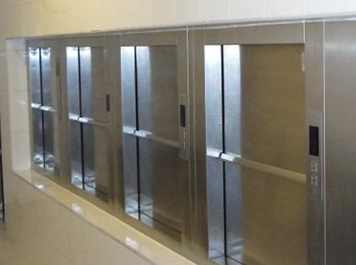 酒店传菜餐梯控制系统主要由PLC主控单元、变频调速主回路、输入输出单元构成,用来完成对酒店传菜餐梯曳引电机及开关门机的起动,加减速,停止,运行方向,楼层显示,层站召唤,轿箱内操作,安全保护等指令信号进行管理和控制功能。控制系统总体架构采用PLC控制变频器调速系统,实现电流、速度、位移三闭环控制。 酒店传菜食梯硬件系统的结构,主要由下列部分构成: 1.可编程控制器:处理各种信号的逻辑关.系,从而向变频器发出起停等信号,同时变频器也将工作状态信号送给PLC形成双向联络关系是系统的核心。 2.变频器调速部分:变频调速主回路由三相交流输入、变频调速驱动、曳引机和制动单元构成。三相电源R、S、T经接线端子进入变频器为其主回路和控制回路供电,输出端U、V、W接电动机的快速绕组,外接制动单元减少了制动时间,加快制动过程。旋转编码器用来检测电梯的运行速度和运行方向,变频器将实际速度与变频器内部的给定速度相比较,从而调节变频器的输出频率及电压,使电梯的实际速度跟随变频器内部的给定速度,达到调节电梯速度的目的。 3.旋转编码器和PG卡:实现闭环运行,为满足电梯的要求,变频器又要通过与电动机同轴连接的旋转编码器和PG卡完成速度检测及反馈,形成速度闭环和位置闭环系统。旋转编码器与餐厅传菜电梯电动机同轴连接,对电动机进行测速。旋转编码器输出A、B两相脉冲,根据A、B脉冲的相序,可判断电动机转动方向,并可根据A、B脉冲的频率测得电动机的转速。旋转编码器将此脉冲输出给PG卡,PG卡再将此反馈信号送给变频器内部,以便进行运算调节。 4.输入输出单元为PLC的I/O接口部分,主要由厅外呼叫、轿箱内选层、楼层及方向指示、开关门、井道内的上下平层、上下强迫换速开关、门锁、安全保护继电器、检修、消防、称重等单元构成。 河北恒越电梯(http://www.hbxydt.com)专业从事餐厅传菜餐梯、餐厅传菜食梯、传菜电梯、研发设计、制造安装、销售、大修改造及日常维修保养服务于一体的专业化电梯公司,具有国家质量技术监督局颁发的制造、安装、改造、维修电梯专业资质证书。 |