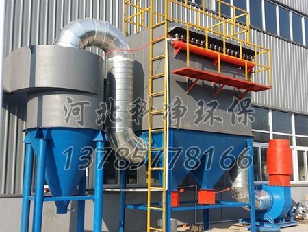 布袋除尘器广泛应用于捕集非粘结非纤维性的产业粉尘和挥发物,捕捉粉尘微粒可达0.1微米,布袋式除尘器具有很高的净化效率,就是捕集细微的粉尘效率也可达99%以上。布袋除尘器的材质就是合成纤维、天然纤维或玻璃纤维织成的布或者毡。布袋除尘器整个设备包括净气箱、尘气箱、灰斗、喷吹装置和支架五个部分。净气箱部,这部分内装有喷吹管,净气部有净气出口,前面是检修门,打开检修门时,可以很方便地更换任何一条滤袋,尘气部分,尘气入口设在气箱部分上部,箱内装有滤袋,灰斗部分,尘气进入尘气箱后,干净空气空过滤袋去净气箱。灰尘将沉降到灰斗中去,且沉降方向与气流方向一致,有利于灰尘的沉降。净气箱和尘气箱之间有隔板,滤袋尺寸为长1200mm,宽480mm,厚26mm的矩形扁滤袋。反吹风装置,装在净气箱下面,包括气包、脉冲阀、脉冲控制仪等。布袋除尘器采用了先进的脉冲反吹系统,与机械振打清灰或低压反吹风清灰相比,这种方法清尘效果好的多,且无活动元件,能大大减少维修工作量。