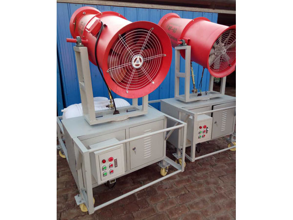风送式喷雾机是根据风送原理,先使用进口高压泵,微细雾化喷雾将水雾化,再利用风机风量和风压将雾化后的水雾送到较远距离,使水雾到达远距离同时能够覆盖更大面积,水雾与粉尘凝结后降落,从而达到降尘的目的。