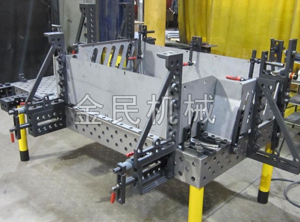 优质三维柔性组合工装夹具 三维柔性组合工装夹具行业简述及设计理念 三维柔性组合工装夹具行业简述: 三维柔性组合工装夹具是一种新型的数字化、标准化、模块化、通用化的环保工装夹具,它是一种三维平面孔系夹紧系统,有D28和D16两种系列。它以多种形式的工作台为基础,配备多种形状、多种规格的标准结构模块,相互间用它特有的定位连接销拴连接,在工作台上需要焊接或装配的工件用带有补偿的形式多样的专用手动夹紧器夹紧;根据需要,也可以配备液压、气动、链型等多种形式的夹紧方式。已广泛应用于汽车制造、工程机械、船舶修造、航空航天、轨道交通、结构件焊接、钣金箱体、自行车(摩托车)制造、与焊接机器人或专用焊机配套等等;三维柔性组合工装夹具具有经济性、灵活性、精确性和耐用性等特点。在焊装生产过程中,选用性能优越的焊接工装夹具对提高焊接产品的精度和质量、缩短加工时间起着非常重要的作用。随着产品焊接生产向小批量、多样化方向发展,在新产品的开发和制造过程中,利用柔性化、模块化的三维组合工装替代传统的专用工装,不仅可以缩短设计、制造时间,而且可以反复使用,节约成本。尤其在专用车辆、工程车辆和大型客车等小批量汽车的生产中,使用柔性组合工装进行焊接生产,则是非常经济而实用的方法。在世界先进国家的汽车焊装生产中已经得到了广泛的应用,在德国奔驰公司、宝马汽车公司、MAN公司、LIEBHERR公司、施维英公司、泛亚汽车技术中心、二汽、神龙汽车等汽车生产厂家的实际应用中已经得到了有力证实。 焊接工装夹具技术优化设计的基本理念: 1、工装平台:工作台的五个工作面都有100mm×100mm(D28系列)或50mm×50mm(D16系列)的带有网格标注的孔。其五个面的平面、平行、垂直公差精度以及孔与孔的位置精度都是非常高的,保证在台面上的定位和台面与其它模块之间的组合都具有足够的使用精度要求。基础台面的尺寸从1000mm×1000mm到4000mm×2000mm可以任意选择,特殊尺寸可以订做。如果台面与台面组合后的精度要求很高,则可以使用导轨将它们连接起来。 2、标准模块:标准模块包括:定位和夹紧直角块、L型定位块、U型定位块、通用挡块、通用夹紧和定位角模(0~225°任意调节)、V型块和V型角模。所有模块上每间隔50mm或25mm均有标准孔(Φ28或Φ16),可以实现工件快速定位和夹紧。 3、定位连接销:这是实现孔系工装夹紧系统的基础零件,也是我们的拳头产品,用以实现快速的定位和夹紧。销栓前端有5个**,插入定位孔后,手动顺时针旋转销栓(或扳动快速手柄),5个**弹出并锁紧在孔的斜面上,完成定位和夹紧;松开时,反向旋转销栓,即可拔出。每个销栓的锁紧力可达5t,剪切力25t。销栓的形状和长度有多种规格可供选择。 4、夹紧模块:按照夹紧方向有平面、垂直和45°夹紧器;按照操作方式有螺栓夹紧、快速夹紧、手柄螺旋夹紧,此外,还有手工、气动或液压三种夹紧方式。其中带补偿的螺旋夹紧器最为常用,这种夹紧器在悬臂中增加了弹性伸缩,用来抵消夹紧时的侧向分力,以补偿夹具本身的变形和插入过程中的间隙,保证夹紧力与受力面垂直。夹紧头部由碳钢、不锈钢、尼龙材料制成,以适合不同的工件要求。也有两点夹紧桥,可以同时夹紧不同高度的两个位置的工件。另外也可以按照夹紧的型面加工特殊的夹紧头。 三维柔性工装夹具的优越性能: 1、柔性夹具的经济性:柔性夹具工装是一种可以自由组合的万能夹具,可适应不同的工件形状,几套工装夹具系统就可以替代大量高成本的专用工装夹具,使用该柔性工装后,可以省去因产品变化而投入的专用工装夹具的费用和时间。在多品种、多规格、个性化的汽车生产中,它的经济性尤为明显。国外有数据表明,9套以上专用焊接夹具的成本(我国5~6套)就超过一套柔性夹具工装。目前我国汽车制造企业每年增加几十套专用焊接夹具是很常见的,选用柔性夹具的经济性显而易见。 2、柔性夹具的柔性化:柔性组合工装平台可以在三维空间进行组合。标准化、模块化夹具系统在安装、调整和夹紧工件中完美地体现了它的通用性功能,在大型工件的焊接上,该特点更加突出。柔性化的另一面体现在操作简便,可以实现傻瓜式操作。在工装平台和标准模块上,所有以12.5mm和25mm为倍数的尺寸均可直接找到,再配上少量的调整片,可以非常方便地准确定位。 3、柔性夹具的精确性:柔性组合工装的所有模块加工精度均较高,工作平台在2000mm的范围内确保定位孔的位置误差在±0.1mm以内,完全可以满足焊接加工的需要。在装配或焊接过程中,使用定位块、连接块、夹紧器和支撑块,能够对工件精确定位,需要装配或焊接的工件可以被稳定地固定在各个定位点或定位面上。如果工件本身的几何尺寸不准确,也可以很快被检测出来,在初加工工序中便被消除。 4、柔性夹具的重复性:柔性夹具的所有模块都使用CAD及Pro/E设计系统,可以非常简便地对样件进行模拟装配,精确的模块尺寸能保证装配精度。 5、柔性夹具的耐用性:在工装平台和模块结构设计中,充分考虑了使用刚性和强度的要求,每个标准的2000mm×1000mm的工作平台载重量可达10t,并能保证其重复定位和夹紧的精度。工装平台和模块的表面经过特殊处理,使焊接时产生的飞溅不容易粘在其工作表面。定位件、支撑件和锁紧销
