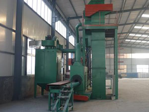 通过式抛丸机最早用于铸造、锻造件等粘砂和氧化皮等的去除。主要是利用高速旋转的叶轮把丸砂抛掷出去高速撞零件表面,达到表面处理的要求。