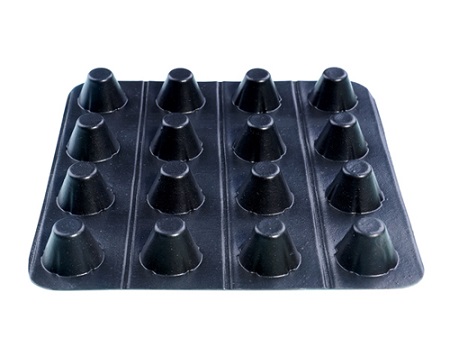 凹凸型排蓄水板具有明显的减噪隔音功能,在地面或墙面使用时,亦可起到很好的通风防潮作用。