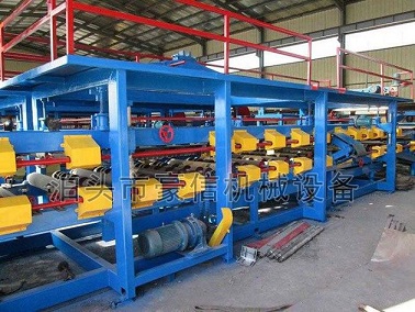 复合保温板设备在钢结构中钢材的堵截应尽可能在剪切机长进行,特别是对于薄壁型钢屋架,因下料要求正确,最好采用电动锯割法,不仅工效高,而且断面光滑平整,质量好,长度误差可控制在±1mm以内。工作台的转位是由装于上轴端头的齿轮组,传动拨销齿轮,拨动装于六方转轮轴上的槽轮来实现分度定位,保证焊接质量。