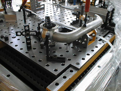 三维柔性铸铁焊接平台铸件产业健康发展的因素有两大方面,一方面是我国低端铸件产能严重过剩;另一方面则是三维柔性铸铁焊接平台铸件业的能耗和污染问题,我国三维柔性铸铁焊接平台铸件业的“健康”问题非常令人担忧。低端铸件产能严重过剩致使我国铸件产业结构畸形,畸形的铸件产业结构极易引起不正当竞争。 根据市场价值规律,供大于求价格下降的原理,大部分铸件企业同处产业低端生产同样的产品,造成低端铸件产能过剩,产能过剩导致产品滞销,许多企业为了出货回笼资金,争夺市场铤而走险,采取种种不正当的竞争手段,日复一日,积累成“病”。能耗、污染问题是三维柔性铸铁焊接平台铸件业的另一个症结所在。生产同质同量的铸件,我国三维柔性铸铁焊接平台铸件业与发达国家铸件业的能耗比已达到3:1,甚至更高。 铸件生产中产生的大量废气、废水已经给周围的环境带来了极大的危害,这些症结的存在不仅让我国的铸件业为病症所困扰,还使它的病症传染给了周围的生态环境,若不及时治疗,会使铸件业同周围的环境一同病入膏肓。因此,必须要解决三维柔性铸铁焊接平台铸件产业的产能过剩、能耗和污染问题,以除病症,才能发展的更长远。 3D多功能焊接工装三维柔性焊接平台夹具压紧件九个优势 三维柔性焊接平台柔性焊接生产线的设想基于对柔性焊接夹具的组成的了解和生产现场焊接工位的整体考虑,提出了柔性焊接生产线的设想。对于纺机生产企业,以产品零件类型可形成多条柔性焊接生产线。 锁紧件:用于平台与附件之间或附件与附件之间的快速锁紧,分为四种,快速锁紧销,沉头锁紧销,外六角锁紧销,扳手锁紧销。 快速锁紧销:锁紧拆卸速度快,用于经常使用的位置,最常用。分为长型,短型两种,短型锁紧厚度为25X2=50mm(两块板厚);长型锁紧厚度为25X3=75mm(三块板厚)。 使用步骤: 1、旋转螺杆,使锁销内五个滚珠完全陷入锁销内部。 2、插入标准孔内,然后顺时针旋转螺杆,使锁销内部的滚珠凸出,与平台或者其它附件下端全角处相切。 3、最后用内六角扳手完全拧紧锁销(一般手动扭紧即可,需强力时用内六角扳手)。 4、取出时,逆时针旋转几圈,使滚珠完全陷入锁销内部时三维,三维柔性焊接平台夹具压紧件九个优势取出锁销。 更多类似文章:水力控制阀的操作方法 水力控制阀如何保养 三维柔性焊接平板广泛适用于 钢结构、各种车辆车身制造、轨道交通焊接、自行车摩托车制造、工程机械、框架和箱体、压力容器、 机器人焊接、钣金加工、金属家具、设备装配、工业管道(法兰)、检测系统具有5大优势 1、经济性:每次产品变化而投入的专用工装的费用\时间几乎可以不再花钱。装置操作简便,使用安全。用户可根据需要快速拼接出不同要求的工装,就像 儿童玩拼装式玩具一样。 柔性化:柔性三维组合焊接工装平 台的 承载能力高,钢性稳定,它的五个面均加工有规则的孔,并刻有网线。焊接平 台可方便地延伸和扩展,组合。经扩展的标准台面可模块化的定位和夹紧直接连接在一起。在安装、调整和定位工件过程将柔性三维组合焊接工装系统的通用功能展 示的淋漓尽致,尤其在了大型工件方面的应用上。拼装方式多样,用户只要充分发挥想象力,几乎可达到任何专用夹具同样的定位和夹紧功能。拼装快速,装拆方便;工作台面可以根据工件形状、大小进行拼装组合。台面上的刻度和模块尺寸的设计,使操作工人不用量具就可以根据工件尺寸迅速搭出所需要的工装。 精确性:三维柔性铸铁焊接平板再2吨左右1M2集中载荷的作用下,其变形量不超过0.50mm,而再均布载荷作用下,其变形量只有 0.024mm,完全可以满足绝大多数的焊接及装配加工的需要,其组建的精度高,工作平台定位孔中心公差保证在0焊接.三维柔性焊接平台05mm以内。这种高精度将会反映在用 户所加工的产品中,因此此工作台也可用作检具的基准平台。 重复性:三维柔性组合焊接工作台的台面有铸铁/钢结构件/精密加工件 /模块化组件组合而成,其性能非常稳定,如使用不当造成部件损坏时,也不用报废整张台,只要非常少的成本就可以更换单个部件。焊接平台经过特殊加工处理,在焊接过程中,仅需低廉的防飞溅液即可免除工作台表面的焊接飞溅。 5、模块化:所有组件分门别类,进行了标准化和系列化,互相匹配。选用最少的模块,就可以实现各种快速定位和夹紧的功能。 三维柔性焊接平板的承载要求:三维柔性焊接平板的承载是指三维柔性焊接平板单位面积承受的重量后,三维柔性焊接平板的变形挠度。为了便于理解,我们可以看作三维柔性焊接平板放好工件后,在不影响正常使用的情况下,三维柔性焊接平板所能够承受的压力。三维柔性焊接平板的精度也可以说是三维柔性焊接平板的平面度:三维柔性焊接平板一般精度要求是不太高常选用3级。三维柔性焊接平板的精度标准在《中华人民共和国机械行业标准》jb/t7974—2000里可以查到。选用精度标准时一般根据使用情况酌情而定。2级精度以上的铸铁平板用做检验、划线、装配等使用,4级精度以下的铸铁平板一般用做铆焊等使用。 三维柔性焊接平板生产工序 一、三维柔性焊接平板毛坯:按技术要求制图纸、按图纸制作木型、配料、造型、烘干、浇铸、落沙、清理、检验毛坯的各部位; 二、三维柔性焊接平板机械加工:外