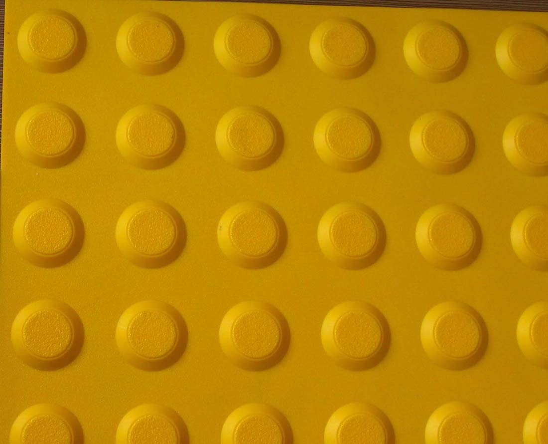 新铺设的盲道 ,直接用胶粘在人行道上的,因此不需要破坏原有路面。绍兴市海斐建材有限公司提供的盲道砖,盲道钉以及盲道条是按照国际残联的有关标准制造的,设计优良,具有灵敏的触觉感,强腐蚀,耐损耗性和长寿命等特征。这种高强塑料盲道砖的表面既美丽又光滑,适用于室内或室外装修。它凹凸的模型不仅可以使盲道更加安全,同时还美化环境作用。在施工期间,安装的方法也非常简单和方便,这种盲人道砖已通过国家安检被大量使用在重要的道路上,耐用性强,并赢得了良好的声誉和评价。 盲人道砖为盲人带来福音,同时也美化了城市道路。规格:300mmX300mm