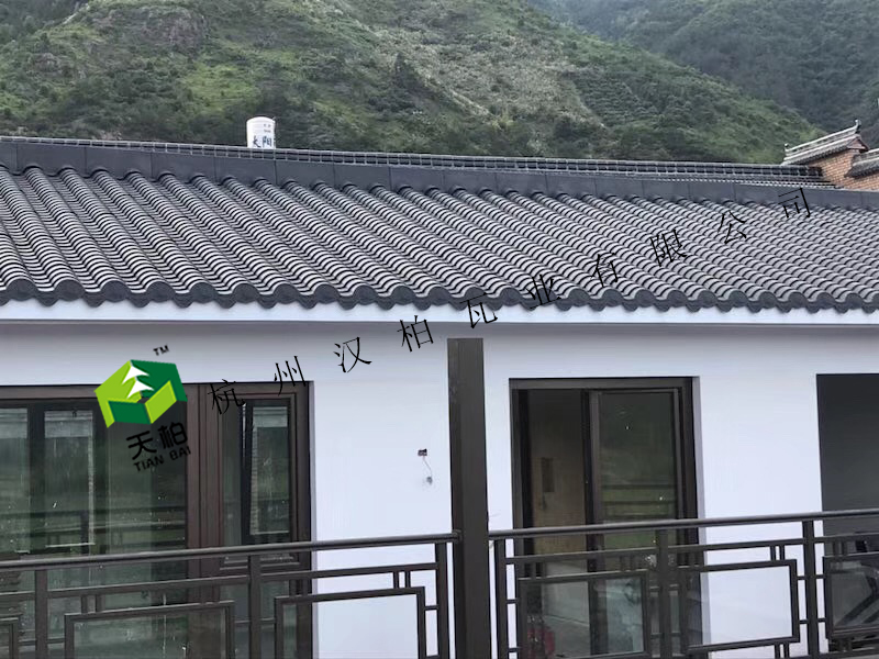 使用寿命长,终生无需维修产品材质使用的是于室外的工业特种树脂材质,其使用寿命在五十年以上,可与建筑同寿。产品设计搭接科学合理,不会产生物理性能上的松动与变形,所以终生无需维修,克服了青筒瓦、陶土瓦已松动、漏雨而需经常维护的致命缺陷。