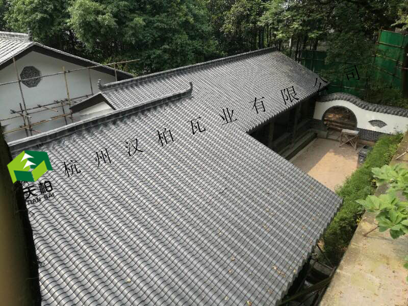高分子装饰瓦产品具有轻质高强、色彩丰富、光洁亮丽的特点,造型既具有古朴典雅的复古风格,又具有高端大气的现代气息,是古典的厚重与现代材质工艺的完美融合。