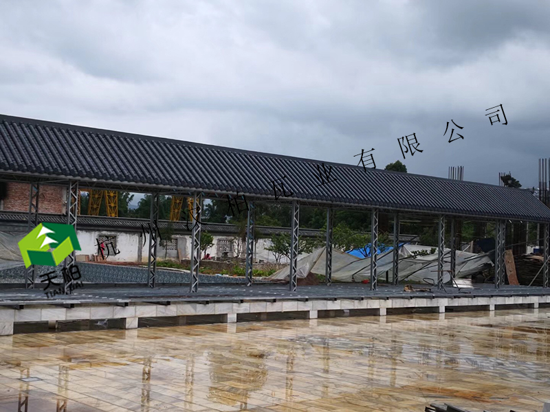 高分子装饰瓦产品具有轻质高强、色彩丰富、光洁亮丽的特点,造型既具有古朴典雅的复古风格,又具有高端大气的现代气息,是古典的厚重与现代材质工艺的完美融合。