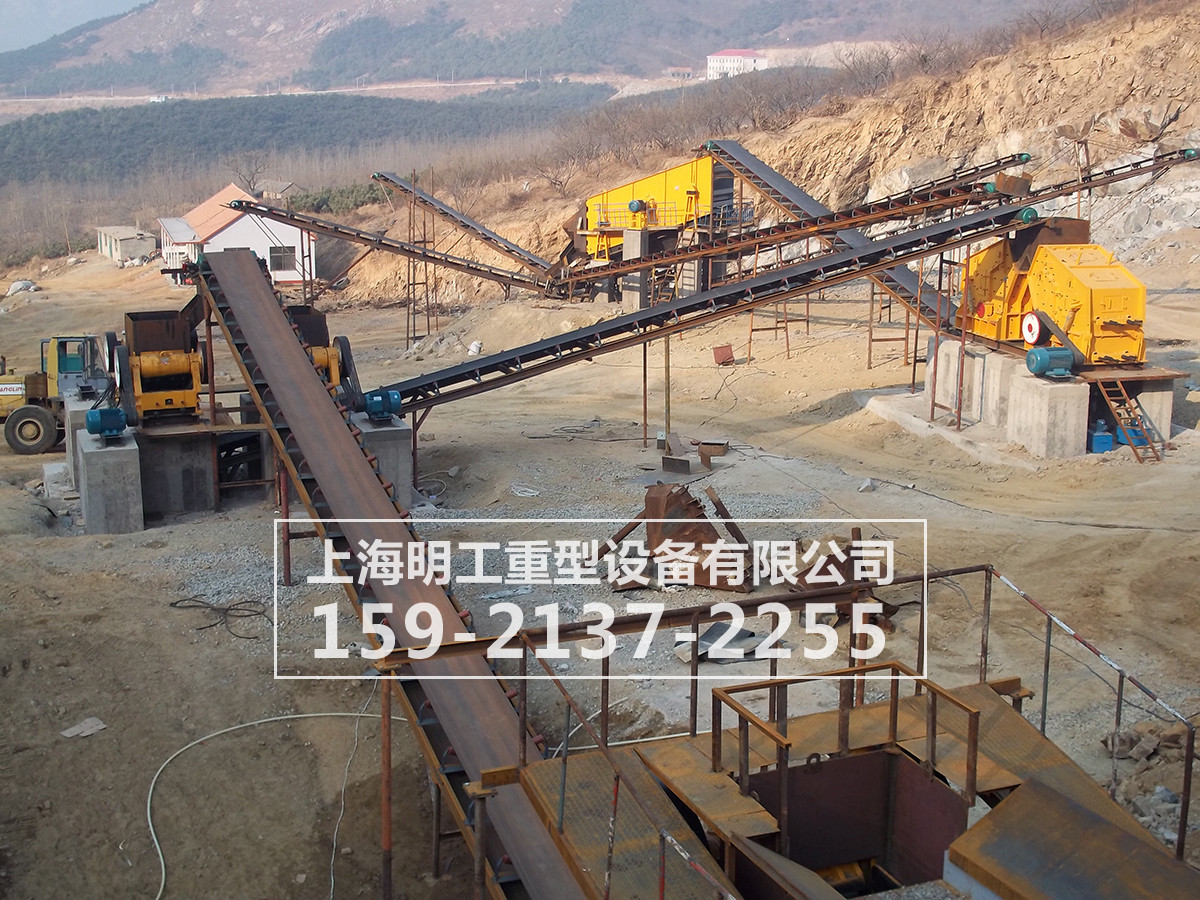 上海明工有现货,可定做,免费安装,上门指导石料生产线主要由振动给料机、颚式破碎机、反击式破碎机、圆锥破,振动筛、集中电控等组成,配以除尘器等设备。碎石生产线设计产量一般为50-500吨/小时。并可根据客户的不同工艺要求,配置各种型号的设备。特别适合于石灰石、灰岩、页岩、花岗岩等中等硬度以下岩石的破碎生产,适用于水电、建材、高速公路、城市建设等行业。石料生产线的设备配置主要依据客户对石料规格以及产量和石料的用途来确定,我们提供售前、售中、售后的全面服务,依据客户生产现场来配置流程,力求为客户做到合理、经济的碎石生产线。 性能特点 : 石料生产线自动化程度高,排料粒度大小可调,破碎率高,节能,产量大,成品石子粒度均匀、粒形好,适合公路桥梁等各种大中小工程项目建设。同时,我公司设计生产的石料破碎筛分联合设备在工艺流程的设计中,由于各级破碎设备匹配合理,以及严谨的空间交叉布局,因此它还具有占地面积小,投资经济效益高等特点。 配置方案 : 1、给料机 + 颚式破碎机 + 液压圆锥破+ 整形机 (VSI 破碎机) + 振动筛 2、给料机+ 颚式破碎机 + 圆锥破 + 整形机(VSI破碎机) + 振动筛 3、给料机 + 颚式破碎机 + 液压圆锥破 + 振动筛 4、振动给料机 + 颚式破碎机 + 圆锥破+ 振动筛 5、给料机+ 颚式破碎机 + 反击式破碎机 + 振动筛 |