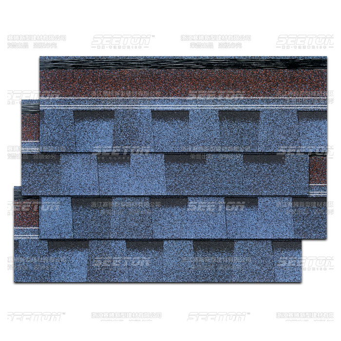 玻纤胎沥青瓦常用瓦型:YFSDD-S201双层水墨灰,YFSDD-S501双层海洋蓝,YFSDD-S909双层亚洲红。